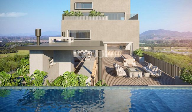 • lazer exclusiva à céu aberto. Seu paisagismo inteligente garante toda a privacidade necessária para relaxar em casa e aproveitar ao máximo a piscina particular com bordas infinita e seu espaço gourmet, com churrasqueira à carvão.