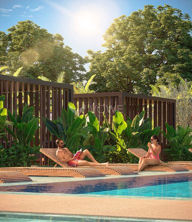 • a piscina climatizada ou nossa pool house, onde você fica bem instalado com tudo o que precisa perto da piscina. Mas se a diversão é com a crianças, não se preocupe. Temos muito espaço para elas brincarem em segurança, como playground, piscina infantil, quadra recreativa e brinquedoteca equipada.