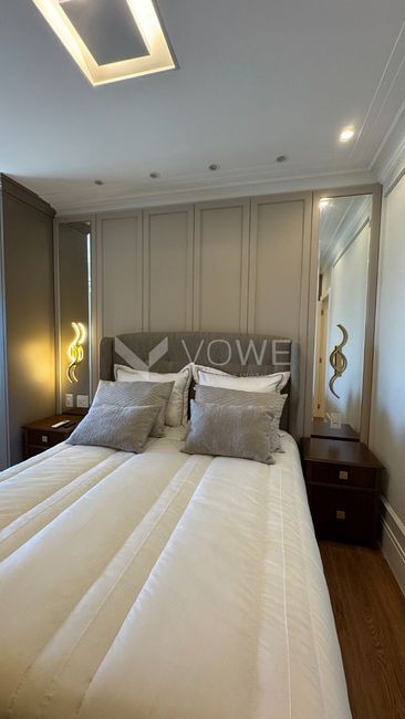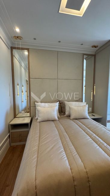Nos dormitórios, piso vinílico com excelente qualidade de acabamento, estética e ótimo desempenho em acústica e durabilidade;